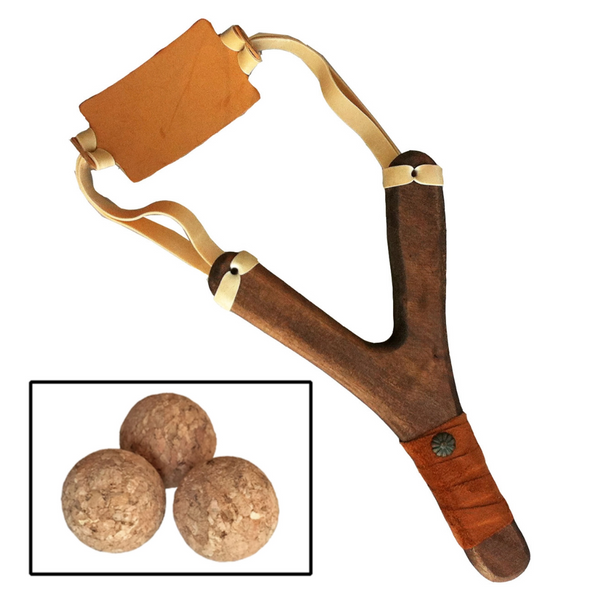 Bardzo wytrzymała drewniana proca. Rękojeść pokryta jest kolorowym, syntetycznym zamszem, który jest bardzo przyjemny w dotyku. W zestawie 3 korkowe kulki.