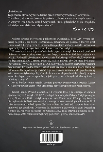 To niezwykle cenna publikacja, zawierająca pierwsze przemówienia papieża Leona XIV, które pozwalają poznać jego myślenie, duchowość i wizję Kościoła — poprzez jego własne słowa.